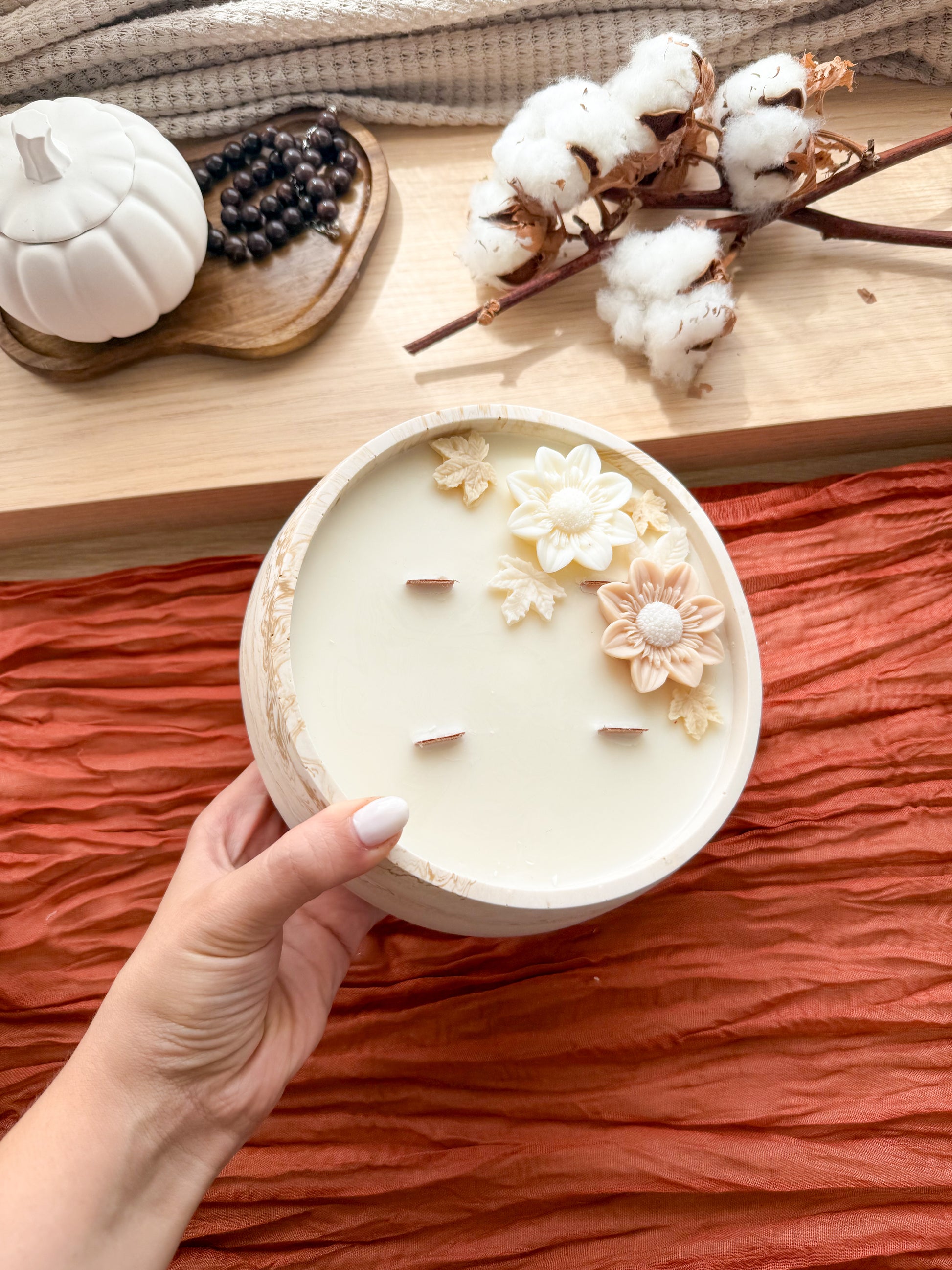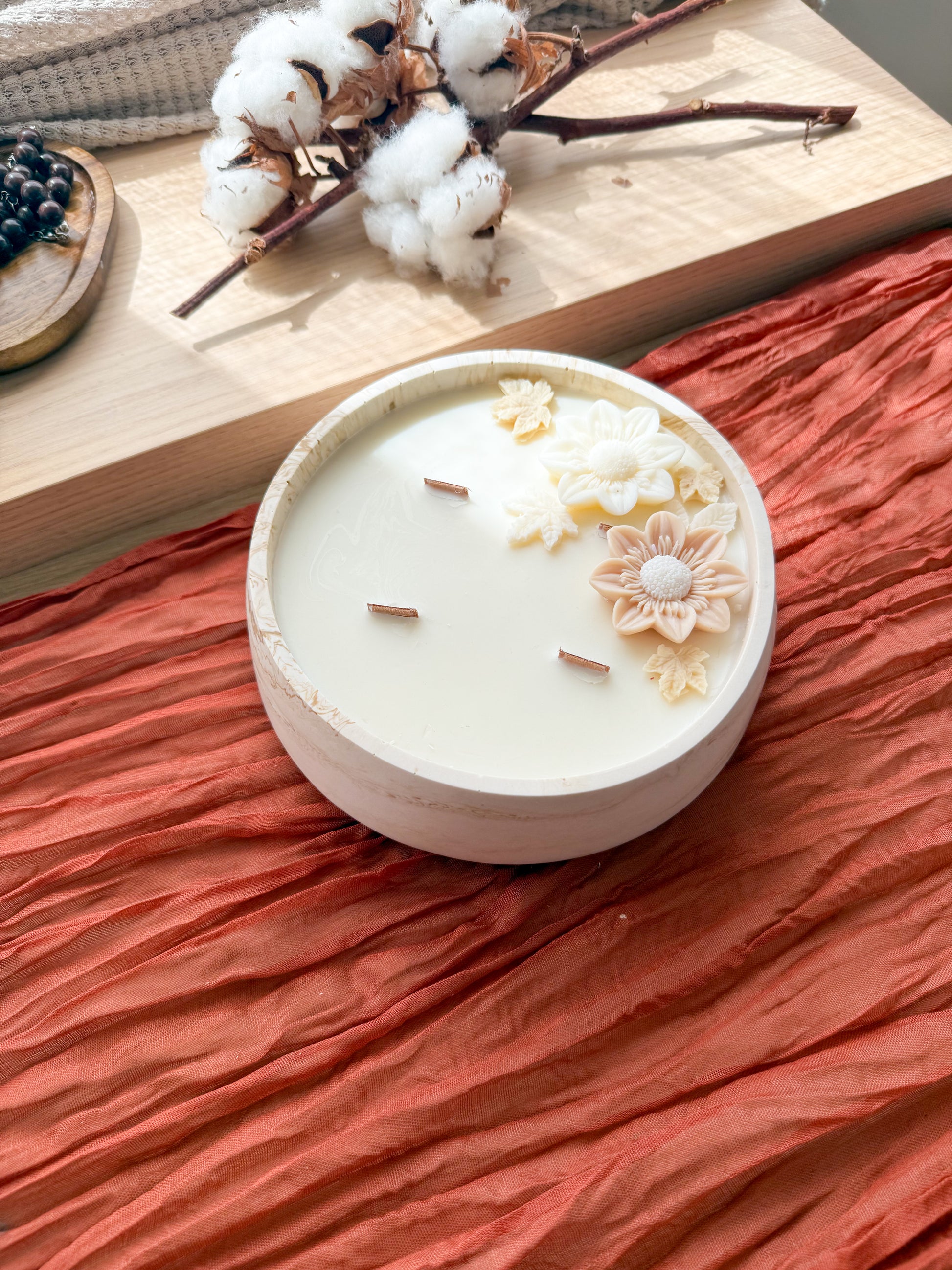 Vela de cera de soja aromática em base de resina ecológica. Ideal para decorar e perfumar o espaço onde se encontra.